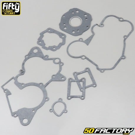 Kit met nieuwe motorpakkingen, geschikt voor 50cc motorfietsen zoals Derbi of aprilia met Derbi Euro 2 motoren voor 2006. Deze set bevat alleen de platte of O-ring afdichtingen zoals afgebeeld in de foto's. Als je ook olieafdichtingen nodig hebt, vergeet dan niet om deze apart te bestellen.