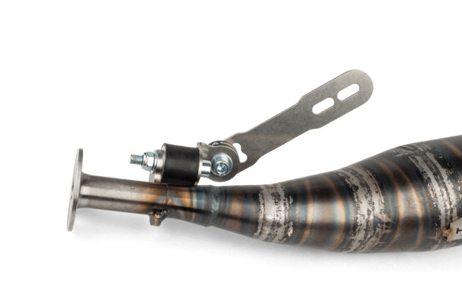 De klassieke expansiekamer-uitlaat van KRM wordt met de hand vervaardigd uit 12 segmenten van 1 mm dun staalplaat (gebogen en gelast). Het resultaat is een uitlaat met een uitstekende afwerking en topkwaliteit materialen ideaal voor echte racers.