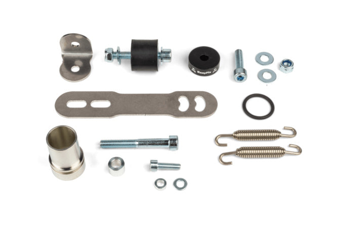 KRM ontwikkelde een zeer stevig en verstelbaar bevestigingssysteem waarmee de uitlaat eenvoudig en veilig op verschillende modellen gemonteerd kan worden. Dankzij het Easyfix systeem is geen extra klem voor de demper meer nodig.