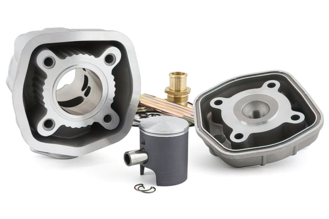 Krachtige en doordacht ontworpen 50cc aluminium cilinder van Metrakit, speciaal voor Derbi Euro 3 motorblokken. Uitgerust met een 3-poorts uitlaatkanaal voor uitstekende acceleratie in het middengebied, zonder in te leveren op toerenbereik en topvermogen.
