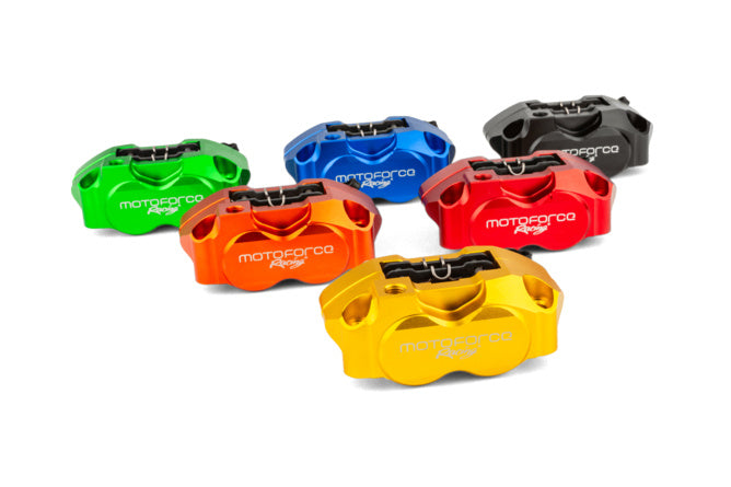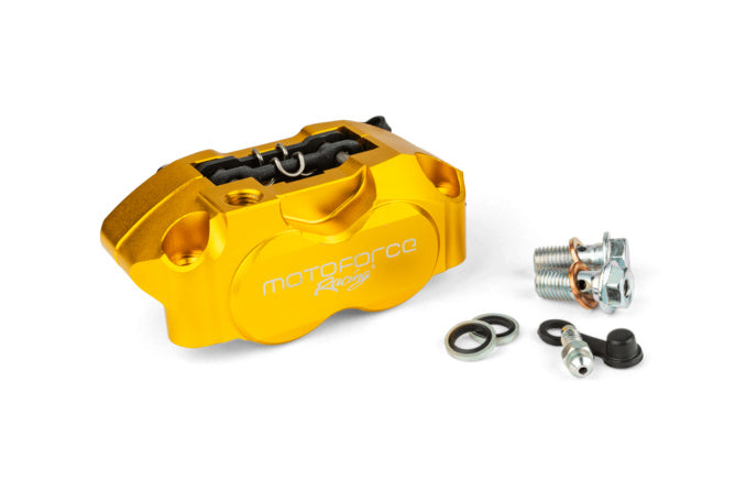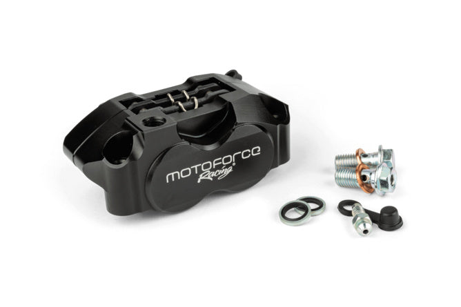 Universele radiale remklauw met 4 zuigers van Motoforce Racing – ideaal voor wie maximale remkracht zoekt voor zijn scooter, brommer of lichte motorfiets.