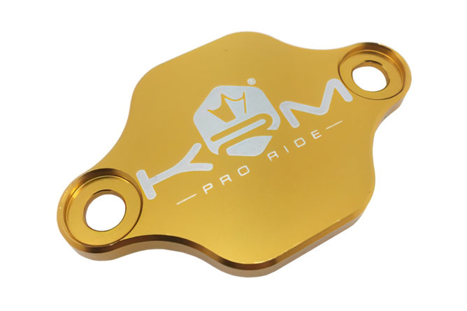 Afdekplaat voor de oliepomp van KRM Pro Ride, geschikt voor Derbi en Minarelli AM6 motorblokken. Perfect voor het netjes afdekken van de oliepomp opening die achterblijft na het verwijderen van de originele oliepomp.
