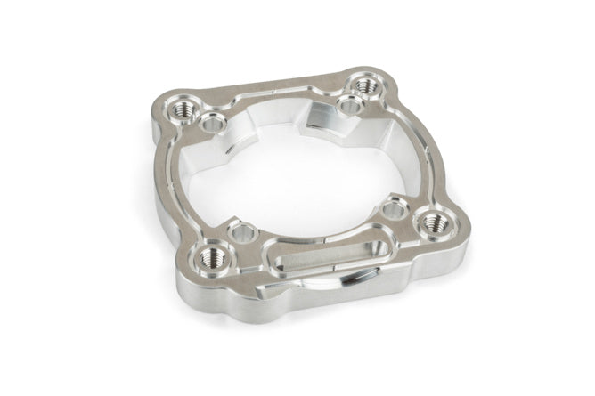 Het werkelijk baanbrekende kenmerk van deze cilinderkit is het nieuwe installatiedesign met cilinderafstandhouder / adapterplaat. De CNC-gefreesde adapterplaat wordt aan het carter bevestigd, de cilinder wordt gemonteerd via externe bouten, zodat er geen bouten door de cilinder gaan. Dit nieuwe ontwerp biedt tuners allerlei mogelijkheden om hun motor (porting) te modificeren en optimaliseren zonder onderhevig te zijn aan de gebruikelijke beperkingen. Een Viton O-ringafdichting tussen de adapterplaat en de cilinder maakt toekomstige afdichtingsprocessen overbodig, bijvoorbeeld bij het vervangen van zuigers.