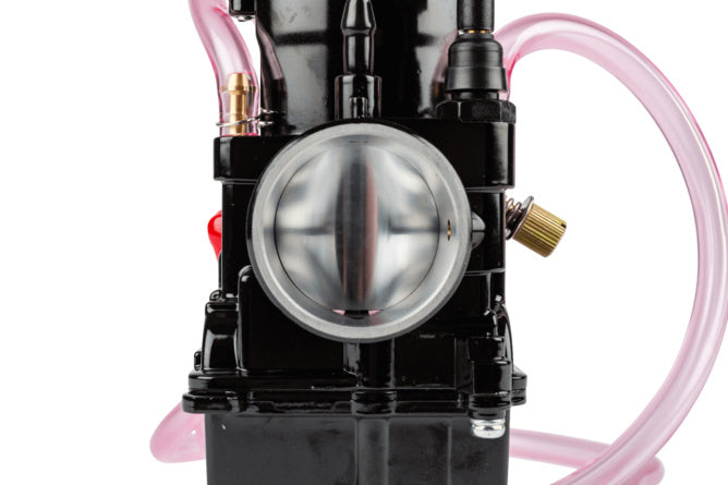 De carburateur is afgewerkt in een stijlvolle zwarte "racing look" en uitgerust met een powerjet, waarmee je het mengsel bij vollast extra kunt verrijken. De powerjet is indien gewenst uitschakelbaar.