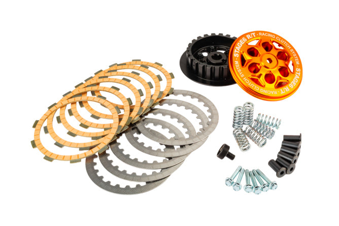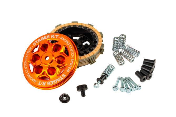 De Stage6 R/T Racing koppeling voor AM6 is een racekoppeling, speciaal ontwikkeld voor extreem getunede motoren met veel vermogen, waar standaard of versterkte koppelingen te weinig druk leveren. Dit is geen simpele upgrade, maar een volledig opnieuw ontworpen koppelingssysteem, gebouwd om maximaal koppel, soepele bediening en langdurige betrouwbaarheid te leveren.