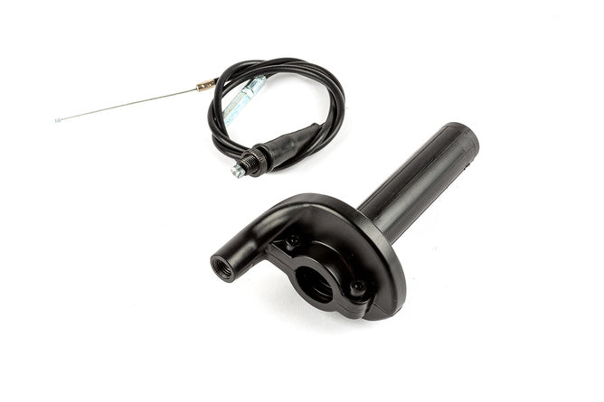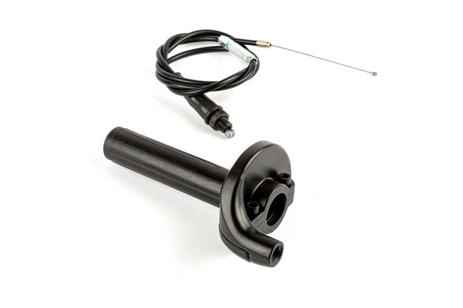 Snelgashendel gemaakt van aluminium, zwart geanodiseerd met een slank ontwerp. Geschikt voor een brede reeks bromfietsen, scooters en motorfietsen.