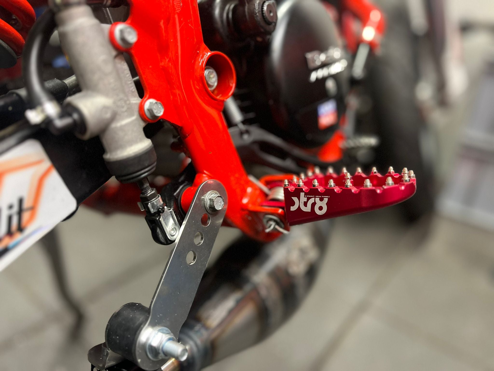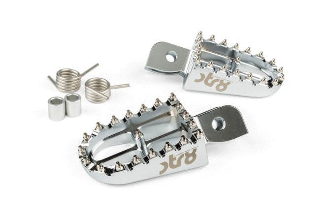 Deze STR8 aluminium voetsteunen zijn volledig CNC-gefreesd en voorzien van een duurzame geanodiseerde afwerking. Het strakke ontwerp met laser-geëtst STR8-logo en de agressieve MX-tanden zorgen voor maximale steun en een sportieve look.